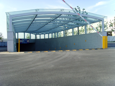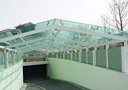 地下車庫出入口雨棚。地下車庫出入口雨棚目的是遮擋雨水,保護(hù)地下車庫免受雨水侵蝕,而且也能夠避免人們進(jìn)出時(shí)被雨水淋濕及空中墜落物砸傷。