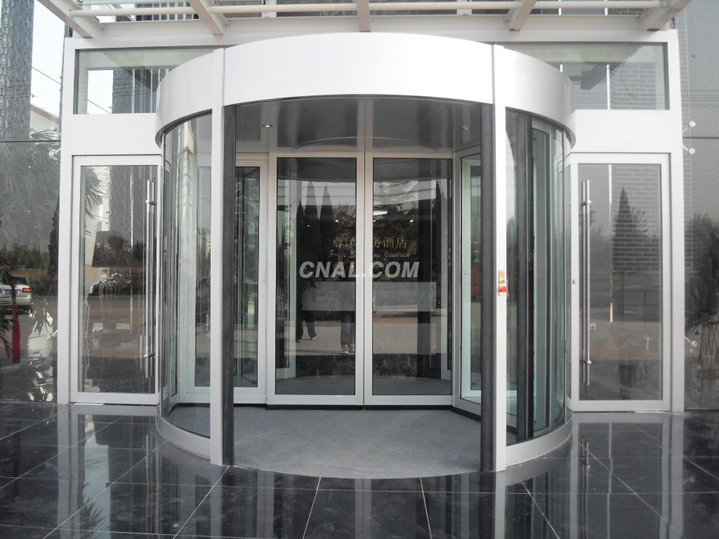 自動(dòng)旋轉(zhuǎn)門由固定框架、帽頭、貼地包邊、邊墻玻璃組成旋轉(zhuǎn)門的外框,中間的展臺(tái)和門扇為旋轉(zhuǎn)部分。自動(dòng)旋轉(zhuǎn)門由程序邏輯控制器(PLC)、計(jì)算機(jī)中心處理裝置(CPU)和調(diào)速電路等控制器件所組成的微電腦控制系統(tǒng)進(jìn)行控制,門的運(yùn)行完全自動(dòng)門、特殊情況下才進(jìn)行手動(dòng)操作。鋁型材和鋼材框架全部外飾有不銹鋼、氟碳噴涂等,天棚吊頂采用鋁塑板,顏色由客戶選定,經(jīng)裝飾后的旋轉(zhuǎn)門顯得格外華麗壯觀。